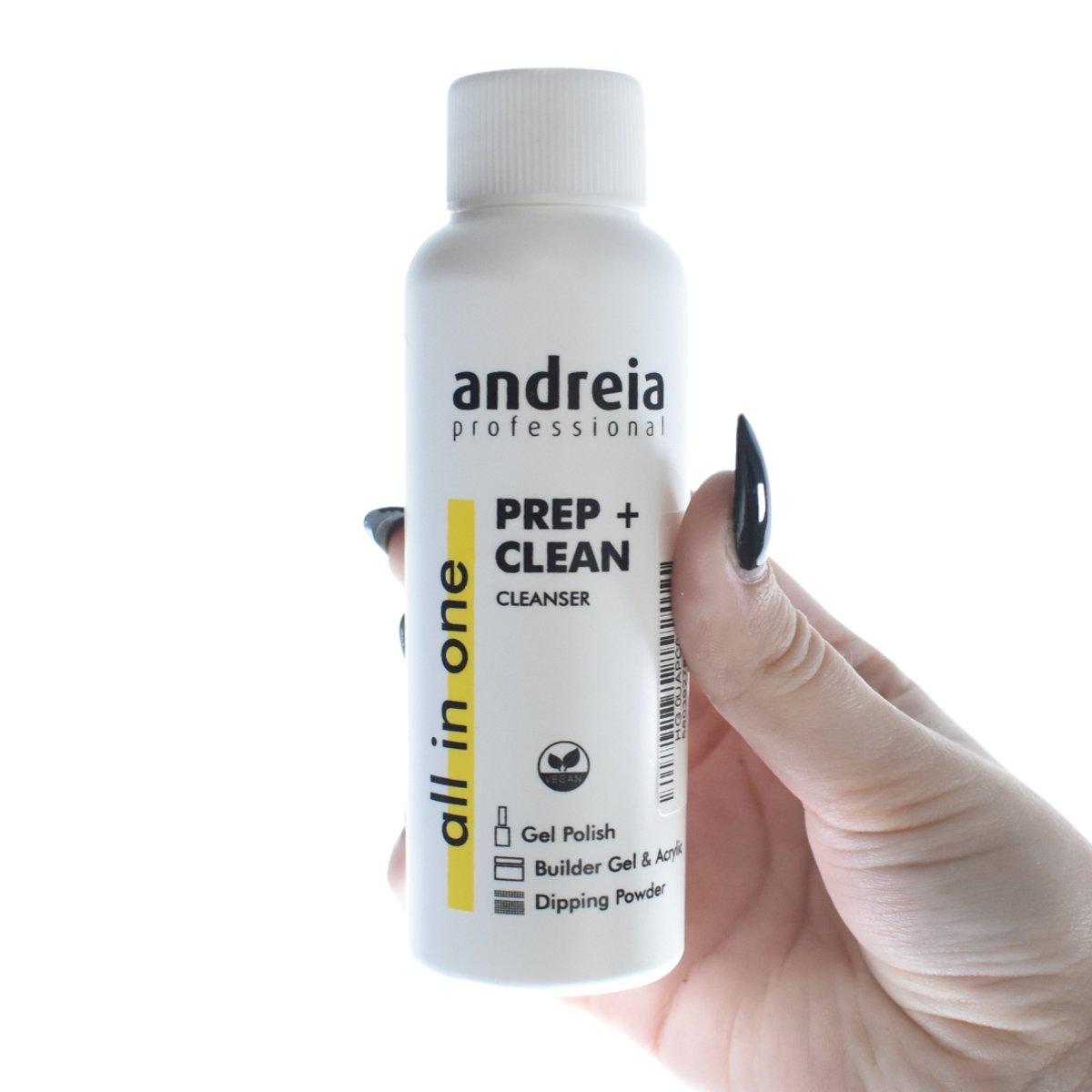 O Andreia All in One Prep + Clean Cleanser é a solução versátil para unhas impecáveis. Remove resíduos de oleosidade antes e após a catalisação final, garantindo unhas limpas e preparadas para uma aplicação perfeita. Essencial para cuidados profissionais e pessoais.