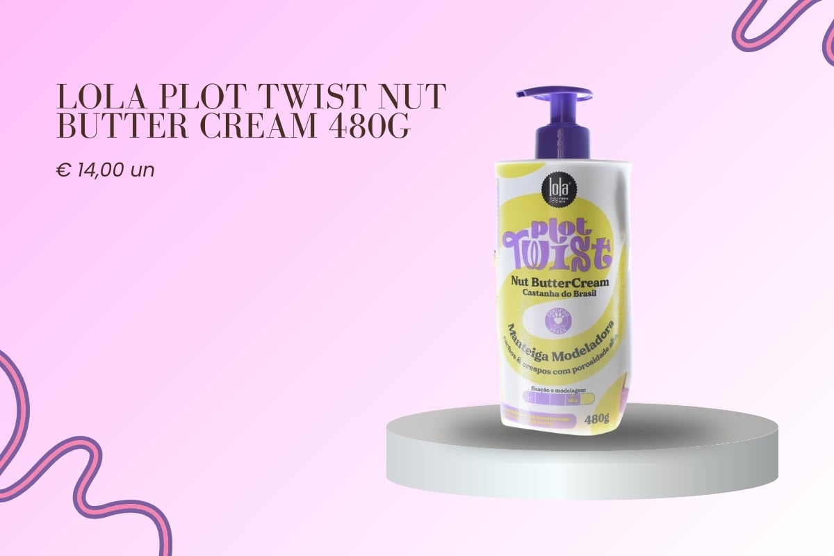 Se procuras hidratação intensa, definição e proteção térmica num só produto, o Lola Plot Twist Nut Butter Cream 480g é a escolha perfeita!