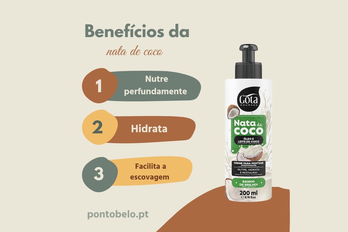 Se o teu cabelo está danificado, quebradiço ou com pontas duplas, o Gota Dourada Nata de Coco Creme de Pentear é a solução perfeita par...