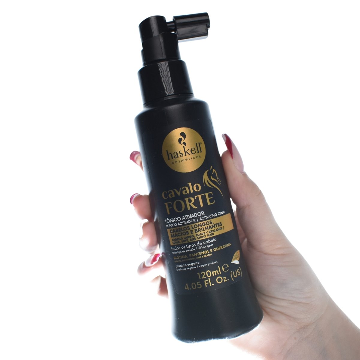 O Tónico Capilar Cavalo Forte da Haskell foi desenvolvido para estimular o couro cabeludo e acelerar o crescimento do cabelo, deixando os fios mais fortes, resistentes e saudáveis desde a raiz.
