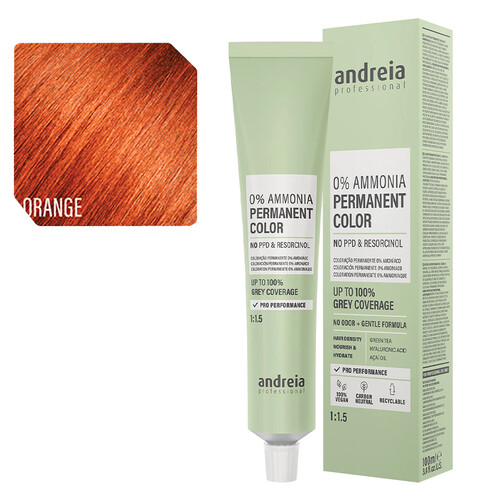 Coloração Vegan Permanente 0% Ammonia 100ml Orange – EAN:5603927889243: Uma coloração capilar vegan e sem amoníaco da Andreia Professional, ideal para uma cor intensa e duradoura, respeitando o cabelo e o couro cabeludo.