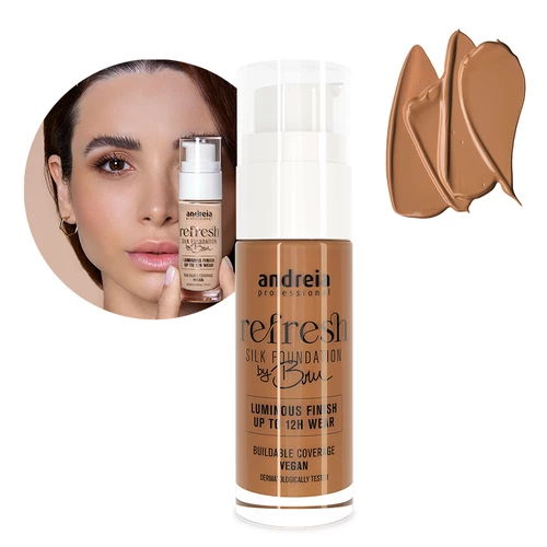 Andreia Refresh Silk Foundation 06 – EAN:5603927889540: Esta base de maquilhagem da Andreia Professional oferece um acabamento sedoso e natural, ideal para uniformizar o tom de pele e cobrir imperfeições. Com cobertura média a alta e longa duração, é perfeita para um aspeto saudável e luminoso.