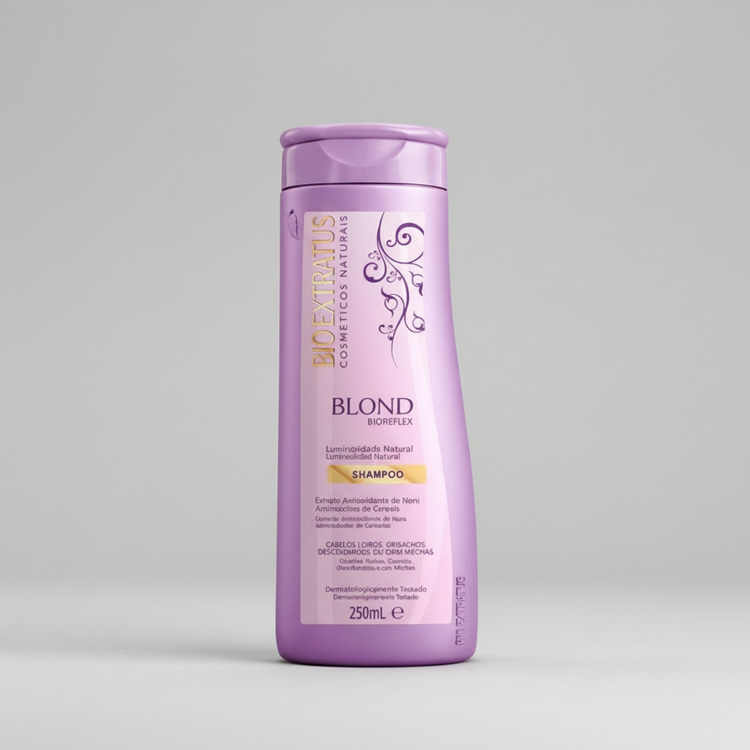 O que é: O Blond Shampoo da BIO EXTRATUS é um champô especialmente formulado para cuidar dos cabelos loiros e descolorados. Com um volume de 250ml, este produto é ideal para manter a cor vibrante e saudável.