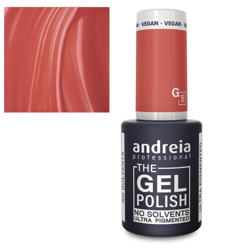 Andreia the Gel Polish G18 – EAN:5603927870227: Verniz gel de alta qualidade que oferece uma cor vibrante e um acabamento duradouro. Ideal para unhas com brilho intenso, é perfeito para uso profissional ou pessoal, garantindo longa duração sem lascar.