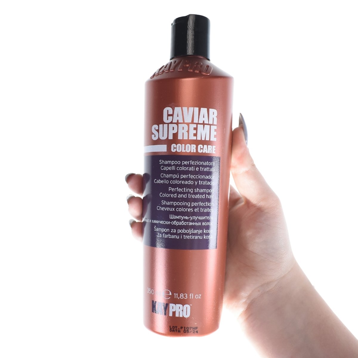 O Shampoo Caviar Supreme da KayPro foi desenvolvido para cabelos pintados ou tratados, oferecendo uma limpeza delicada enquanto protege e prolonga a durabilidade da cor. A sua fórmula avançada com extrato de caviar fixa os pigmentos, evitando o desvanecimento e mantendo os fios vibrantes e brilhantes por mais tempo.