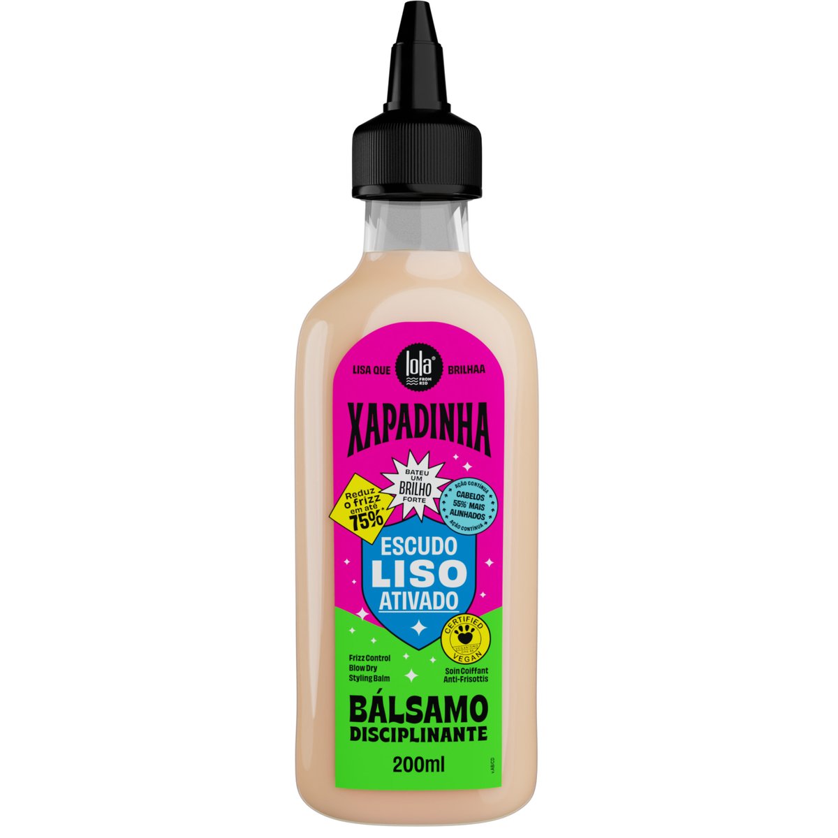 Lola Xapadinha Bálsamo Disciplinante com alta proteção térmica. Deixo instantaneamente os cabelos mais alinhados, macios e sem frizz. Proporciono efeito liso temporário e antifrizz mesmo em condições de alta umidade. Não possuo química de transformação e protejo dos danos das ferramentas térmicas.