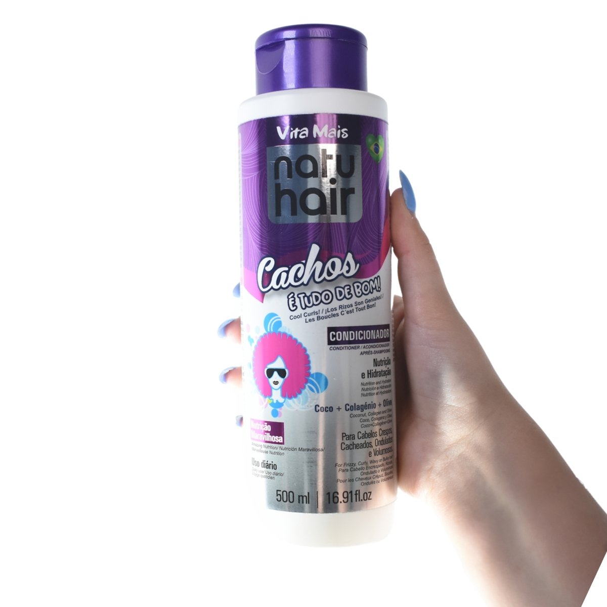 1️⃣ Após lavar com o Shampoo NatuHair Cachos É Tudo De Bom, aplica o condicionador nos comprimentos e pontas.