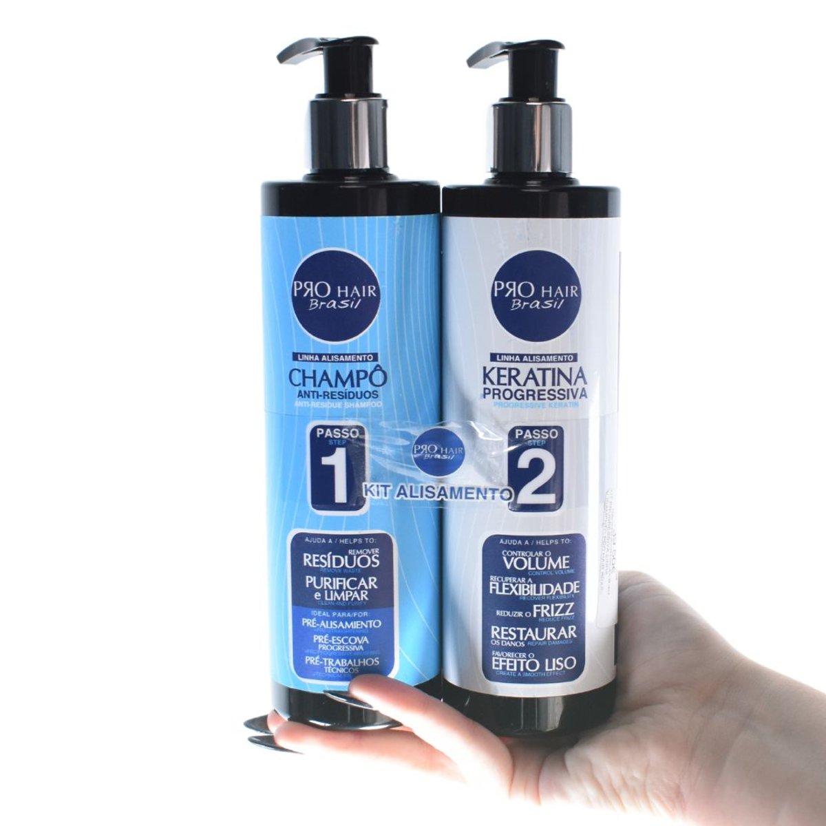 Transforme o seu cabelo com o Kit Alisamento Pro Hair Brasil! Inclui Champô Anti-Resíduos para limpeza profunda e Keratina Progressiva que reduz frizz, controla o volume e restaura o brilho. Obtenha um alisamento duradouro, disciplinado e saudável com resultados progressivamente melhores. Ideal para cuidados profissionais em casa!