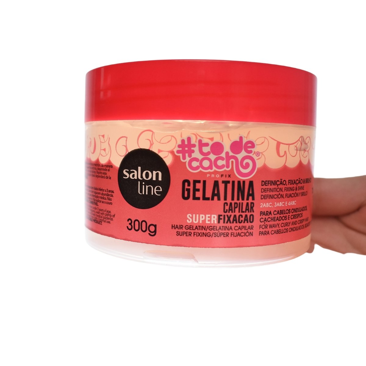 *Por unidade-IVA 23%A Salon Line #Todecacho Gelatina Super Fixação 300g é a escolha perfeita para quem deseja cachos definidos, com fixação extrema e extrabrilho. Ideal para cabelos com curvaturas 2ABC, 3ABC e 4ABC que precisam de mais definição e vida, esta gelatina proporciona um styling duradouro sem pesar nos fios.