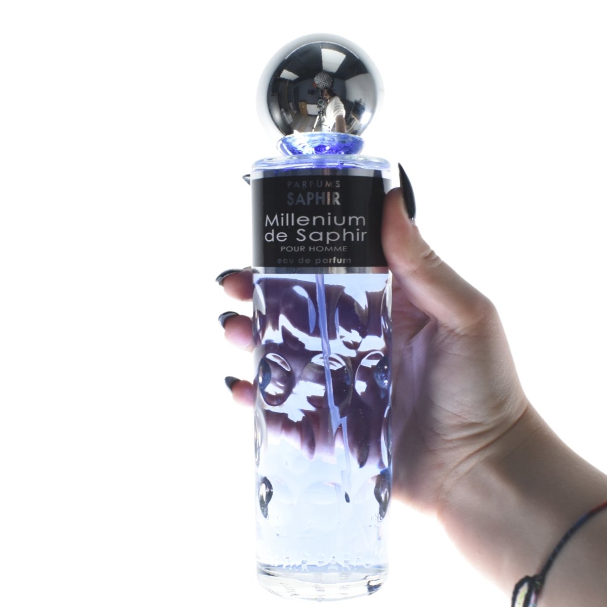 Saphir Millenium combina pera fresca, madeira de caximira e sândalo em um perfume líquido sofisticado de 200 ml. Ideal para homens que valorizam intensidade e estilo.